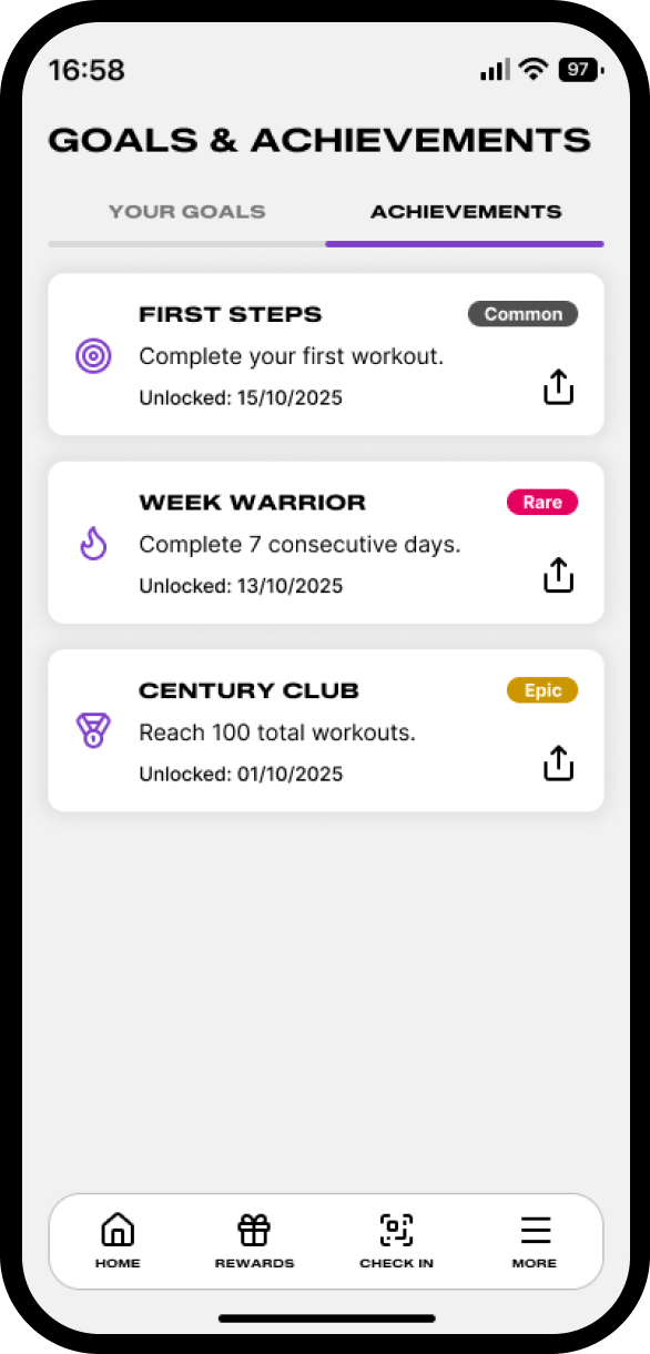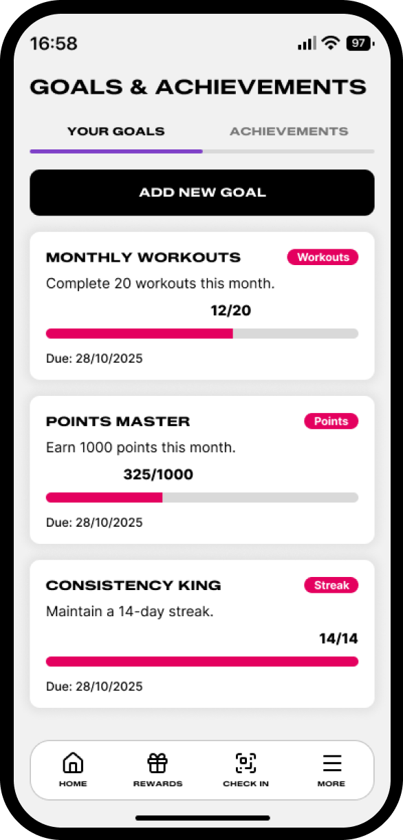 The more you show up, the more you earn. Each check-in adds to your points total, unlocking real rewards that keep you motivated to stay active.